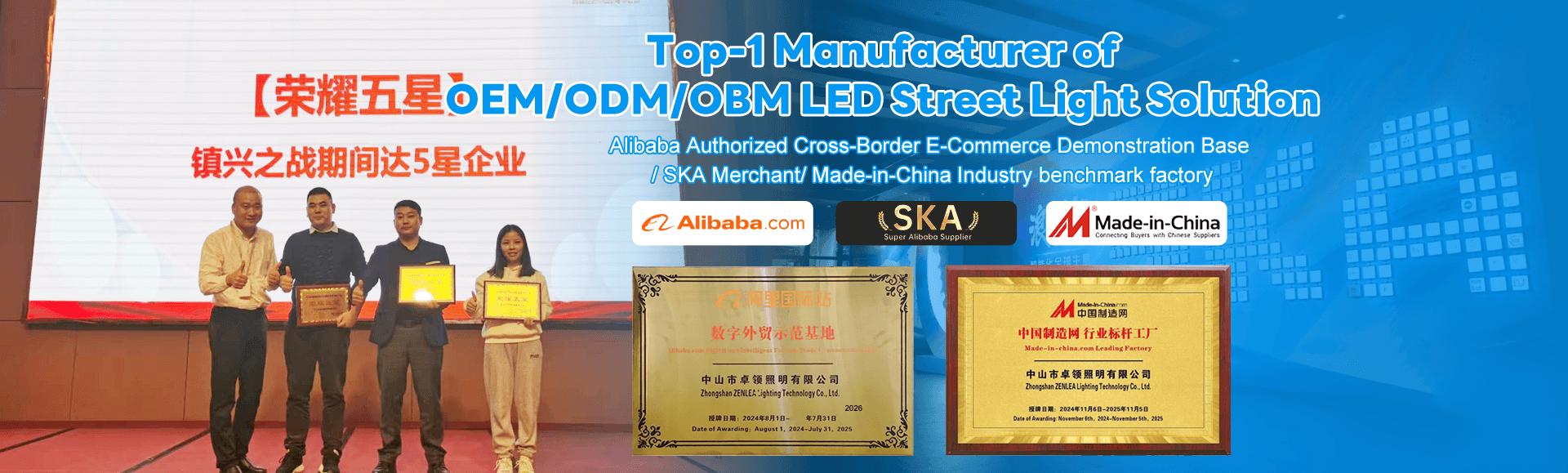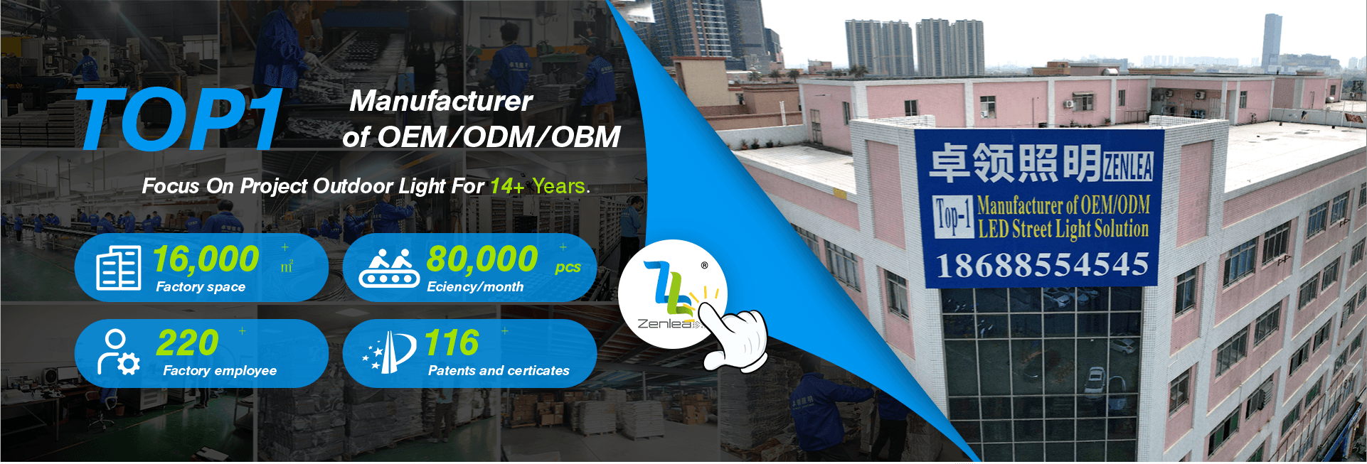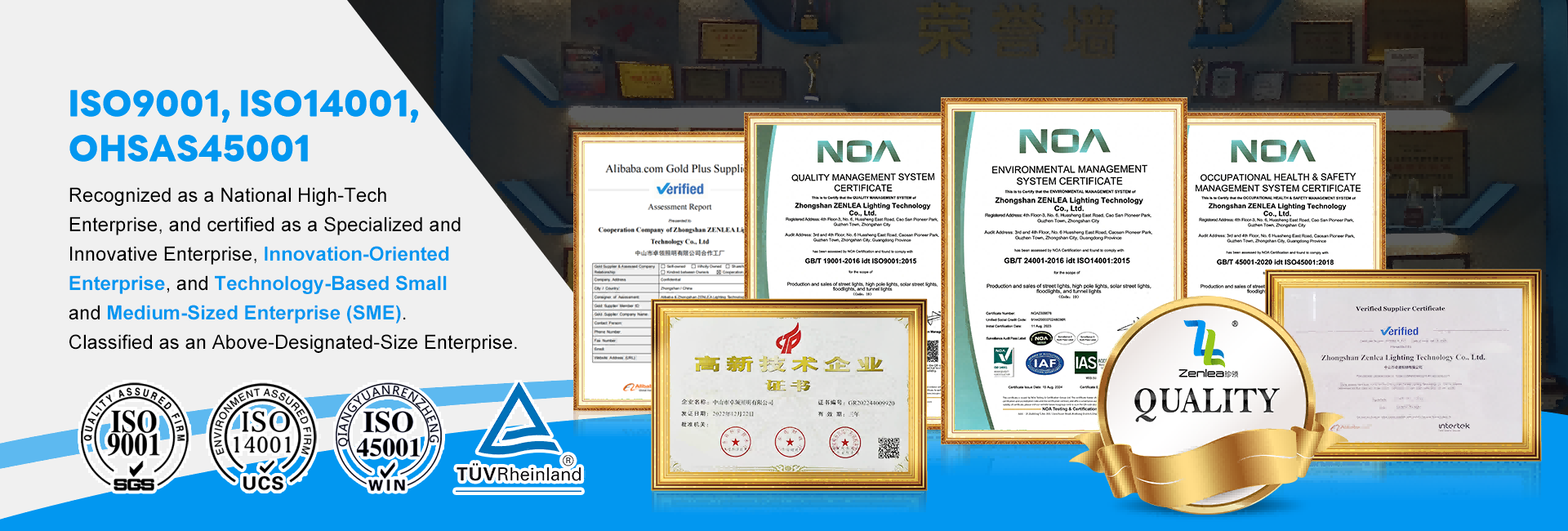 ZENLEA Lighting is located in Guzhen, the lighting capital of China. Since 2013, we have been focusing on LED street light, solar street light, high mast light, tunnel light, high bay light, flood light, strip light , and garden light. We are a high-tech, technology-based enterprise that integrates application, development, production, sales and service. We are an "innovative enterprise, a specialized enterprise, an advanced manufacturing enterprise, and a standard-implementing enterprise."